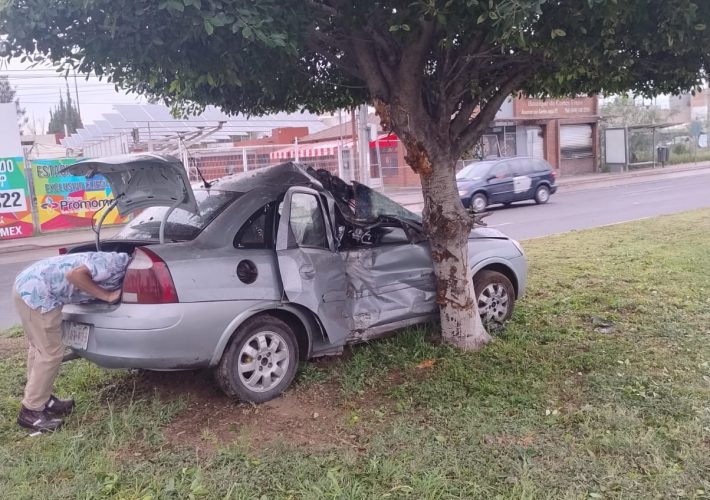 Policías Viales de Aguascalientes atienden fuerte choque contra árbol, que tuvo lugar en av. Aguascalientes.