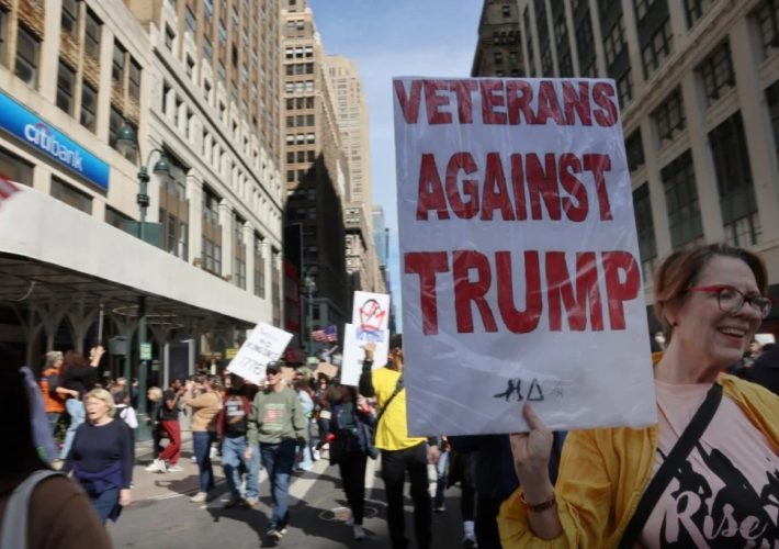 Veteranos pacifistas de EE. UU. protestan en el Día de los Veteranos contra los despliegues militares internos y la política de Trump.